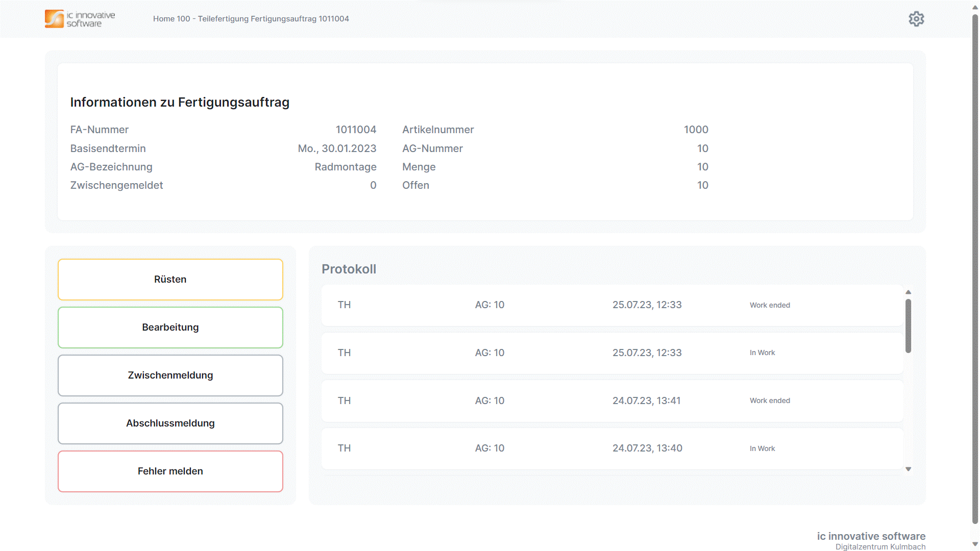 Ihre Mitarbeiter haben die Möglichkeit, Produktionsaufträge über eine benutzerfreundliche und intuitive Oberfläche einzusehen, anzunehmen und nach deren Fertigstellung zu melden. Sogar Zwischenmeldungen sind problemlos möglich.