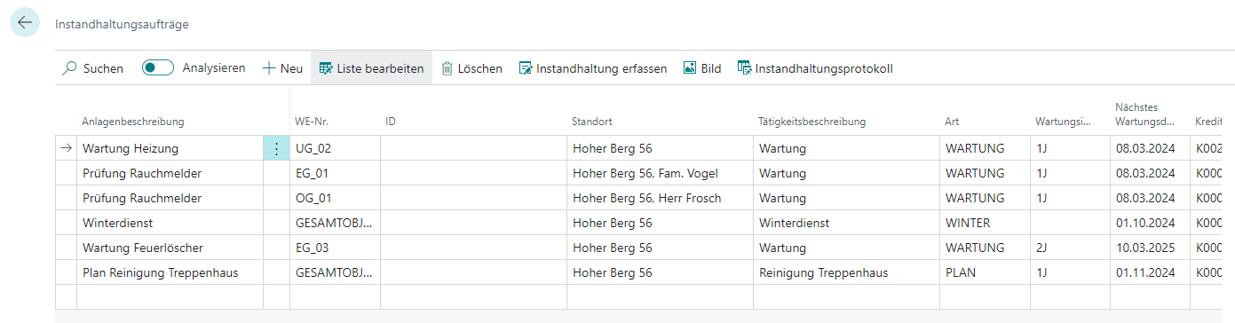 - Verwaltung von wiederkehrenden Instandhaltungsaufträgen (z.B. Heizungswartung)