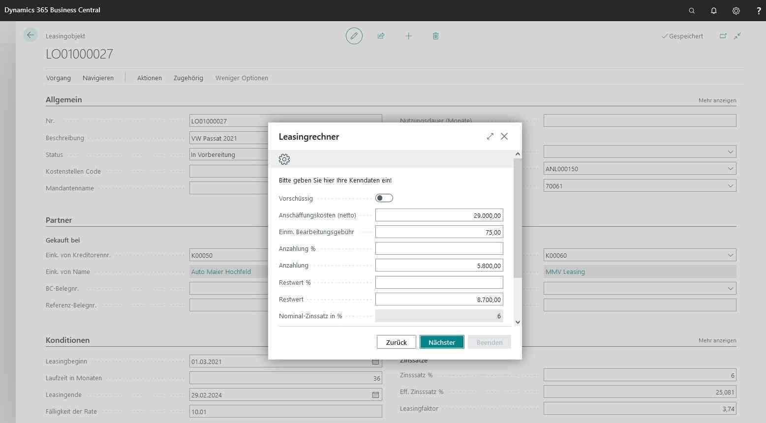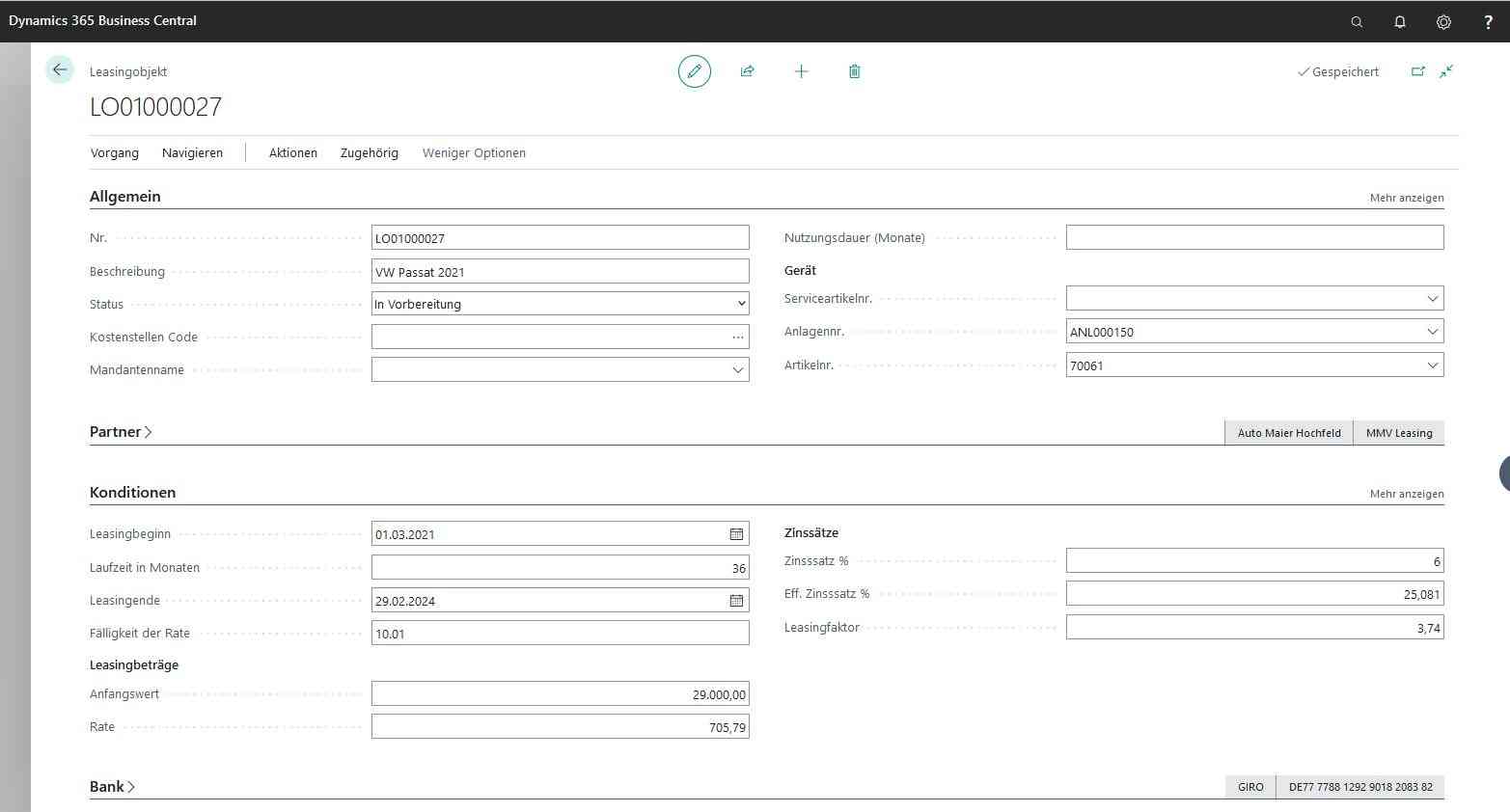 Leasingverwaltung in Business Central