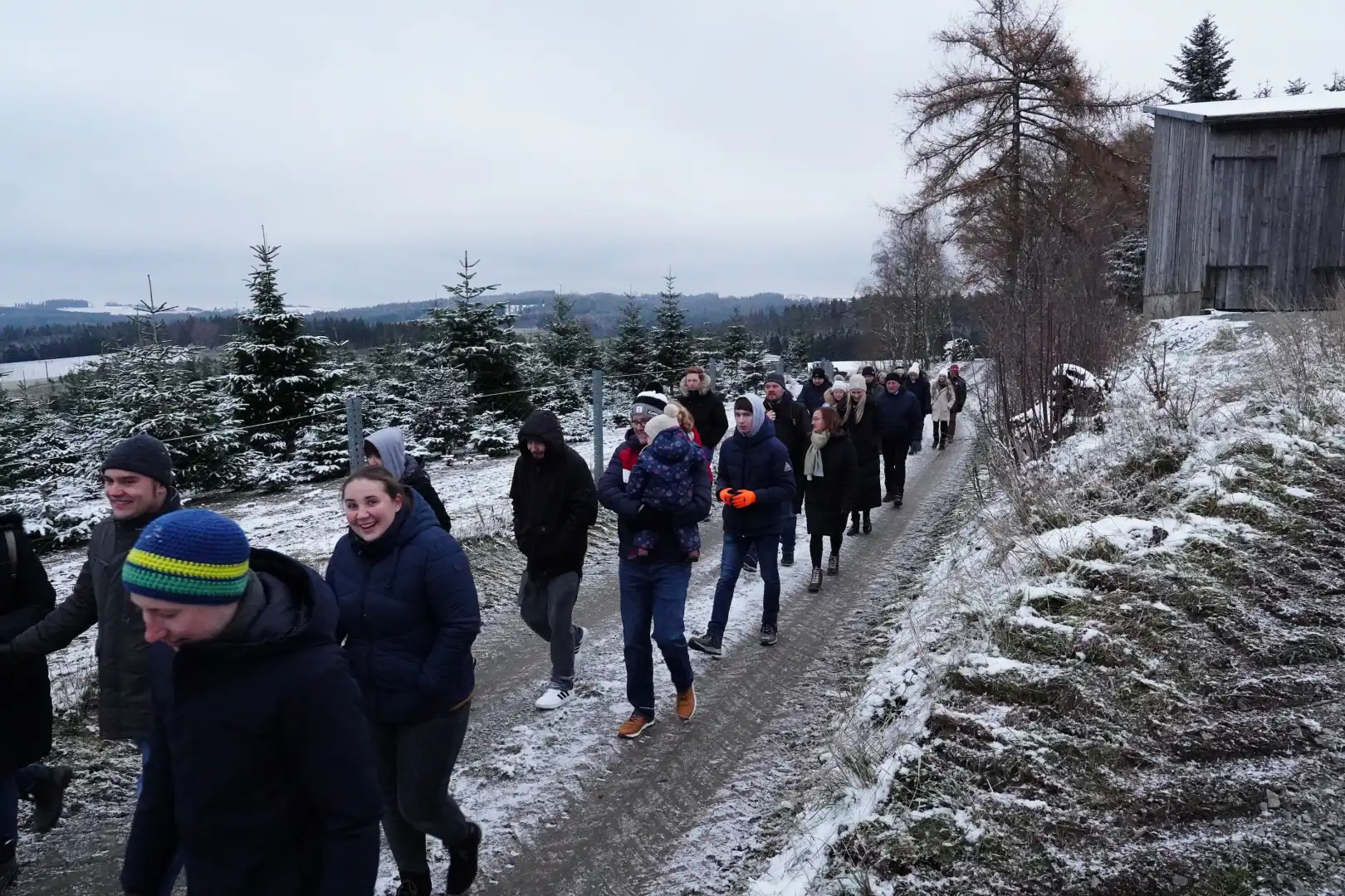 Anschließend ging es für die Mitarbeiter und ihre Familien mit dem Bus nach Schwand zur Christbaumplantage des „Eisbären Hofs“. Dort konnte nach dem schönsten Weihnachtsbaum für die eigenen vier Wände gesucht und dieser dann auch selbst gefällt werden.