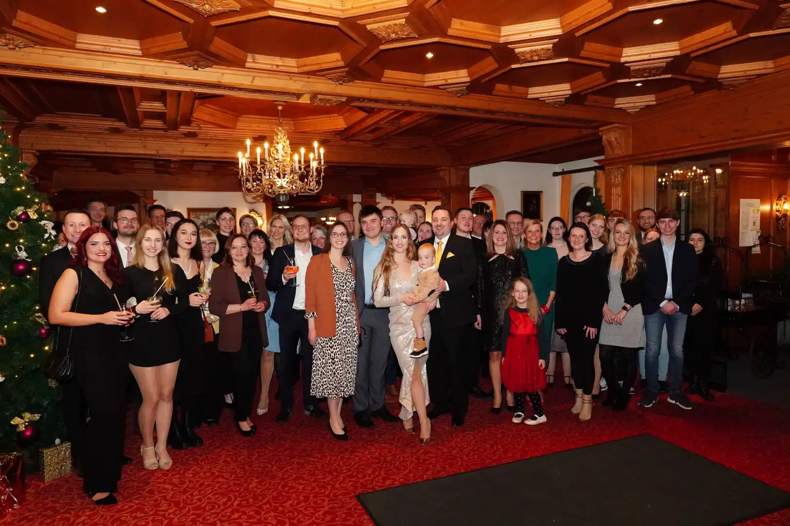 Dort war es nun Zeit, die warme Outdoor-Kleidung gegen die festliche Abendgarderobe zu tauschen. Im Anschluss traf man sich dann zum Aperitif in der Hotellobby und um die ersten Bilder mit der für diesen Abend bereitgestellte Foto-Box zu schießen.